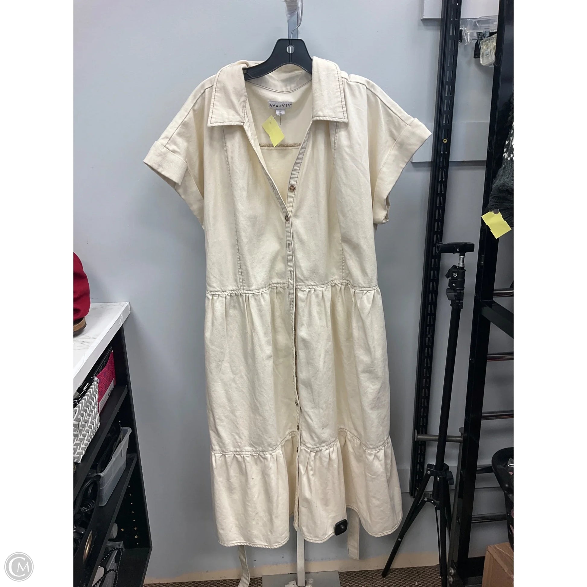 Dress Casual Short By Ava & Viv In Cream, Size: 2x