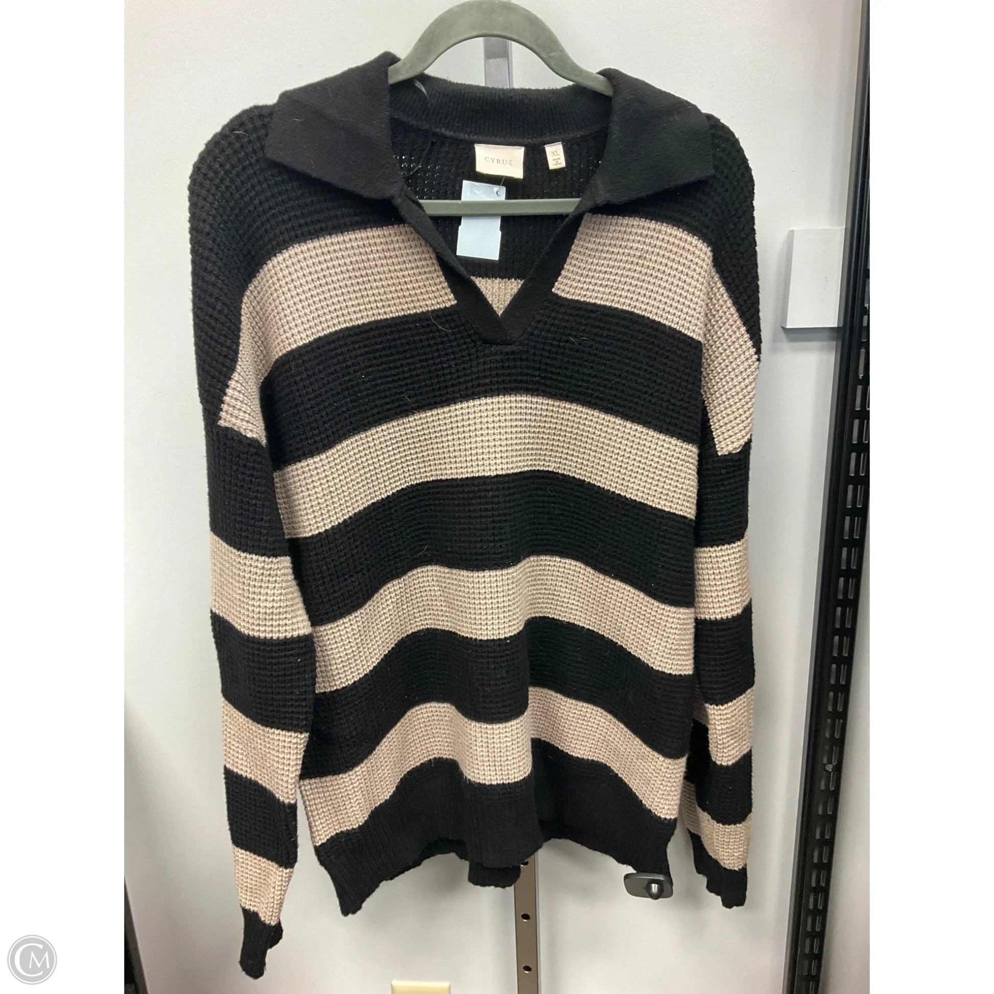 Sweater By Cyrus In Black & Cream, Size: Xl