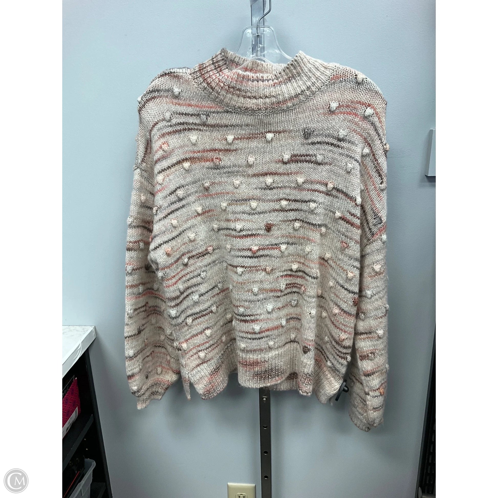 Sweater By Loft In Cream & Orange, Size: L