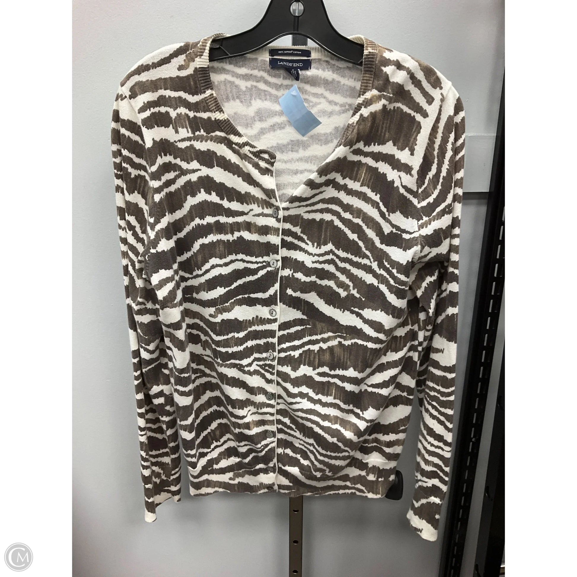 Sweater Cardigan By Lands End In Zebra Print, Size: M