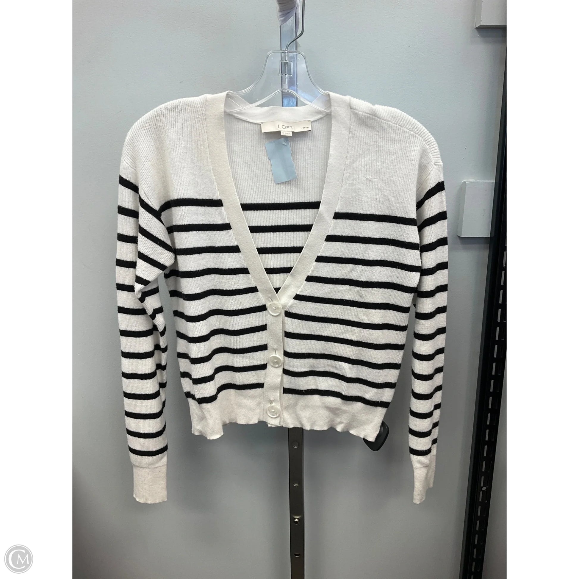 Sweater Cardigan By Loft In Striped Pattern, Size: Mp