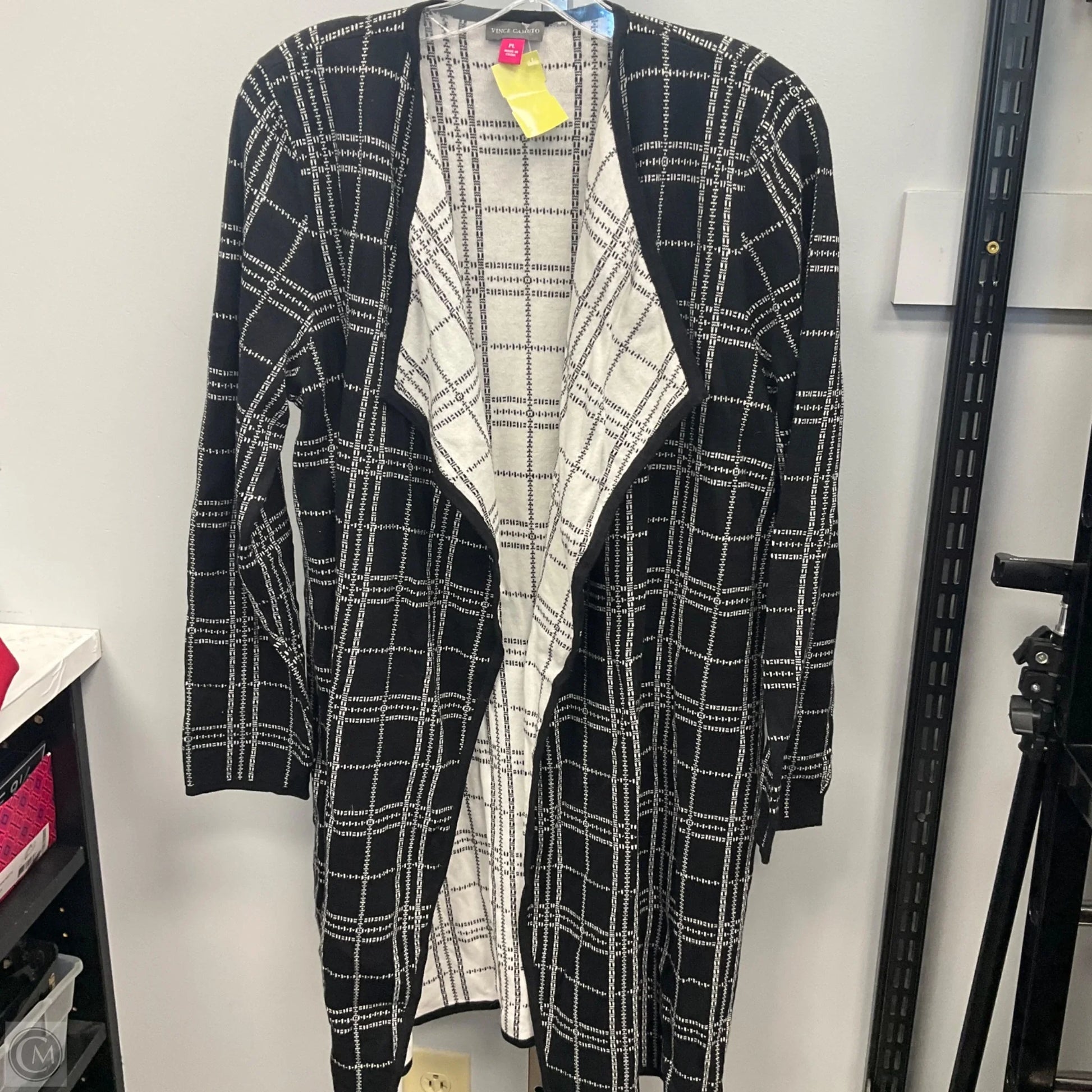 Sweater Cardigan By Vince Camuto In Black & White, Size: Lp