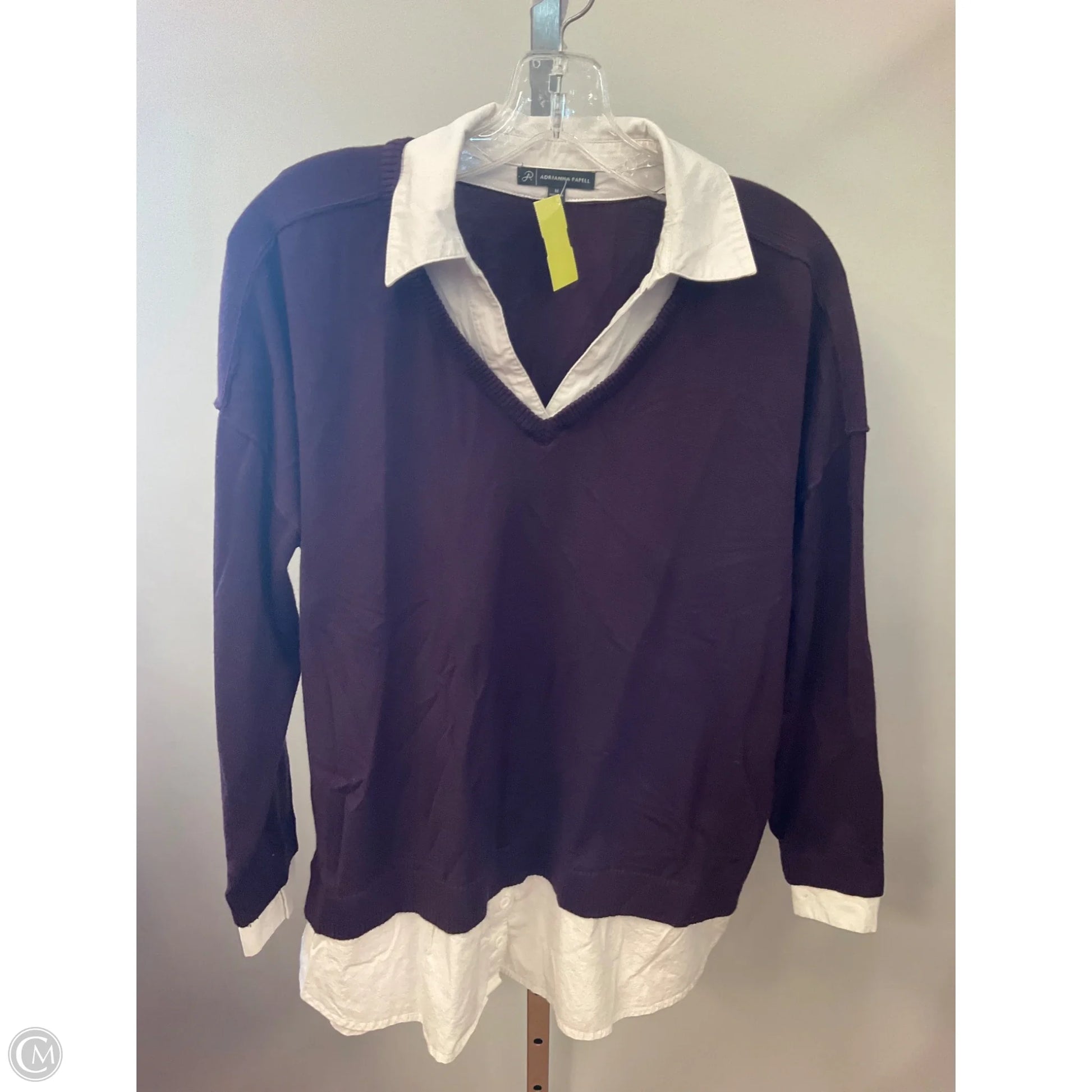 Top Long Sleeve By Adrianna Papell In Purple & White, Size: M