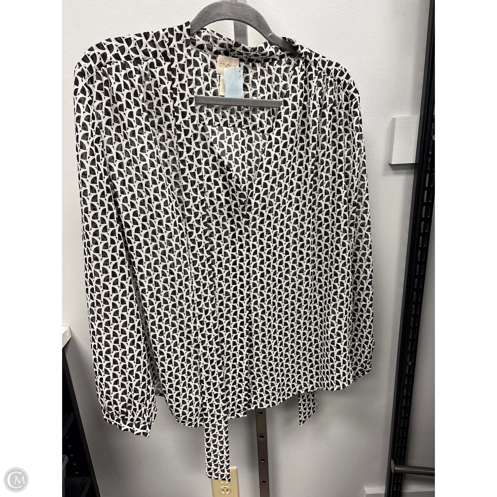 Top Long Sleeve By Chicos In Black & White, Size: L