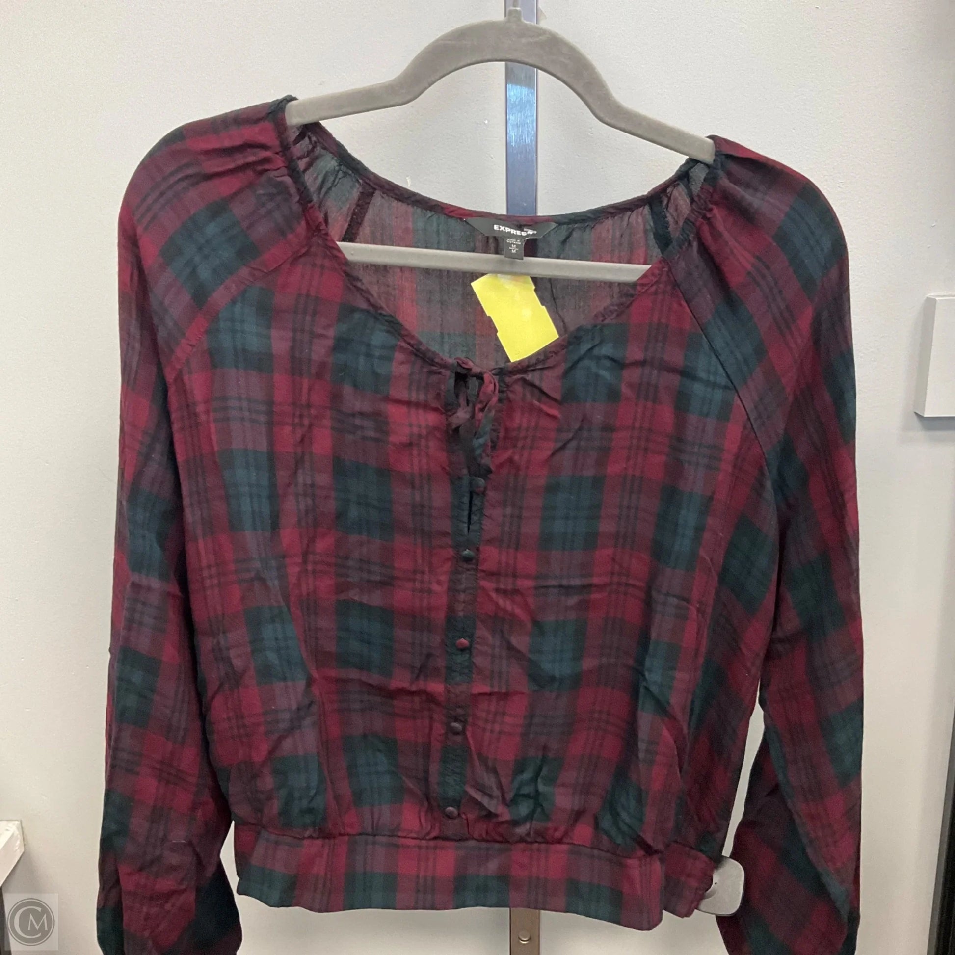 Top Long Sleeve By Express In Plaid Pattern, Size: M