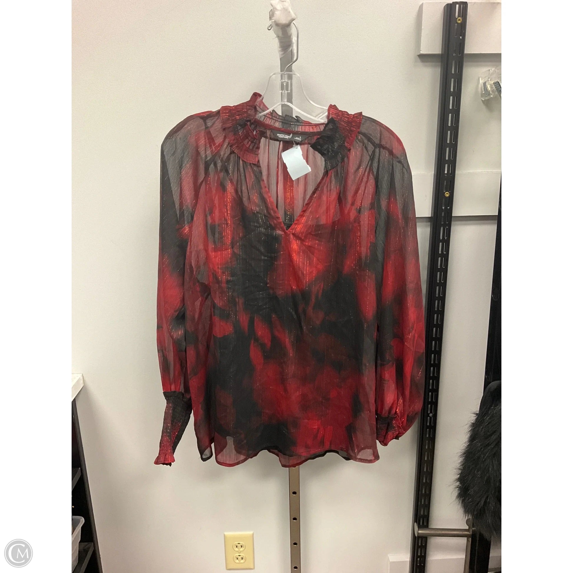 Top Long Sleeve By Simply Vera In Black & Red, Size: L