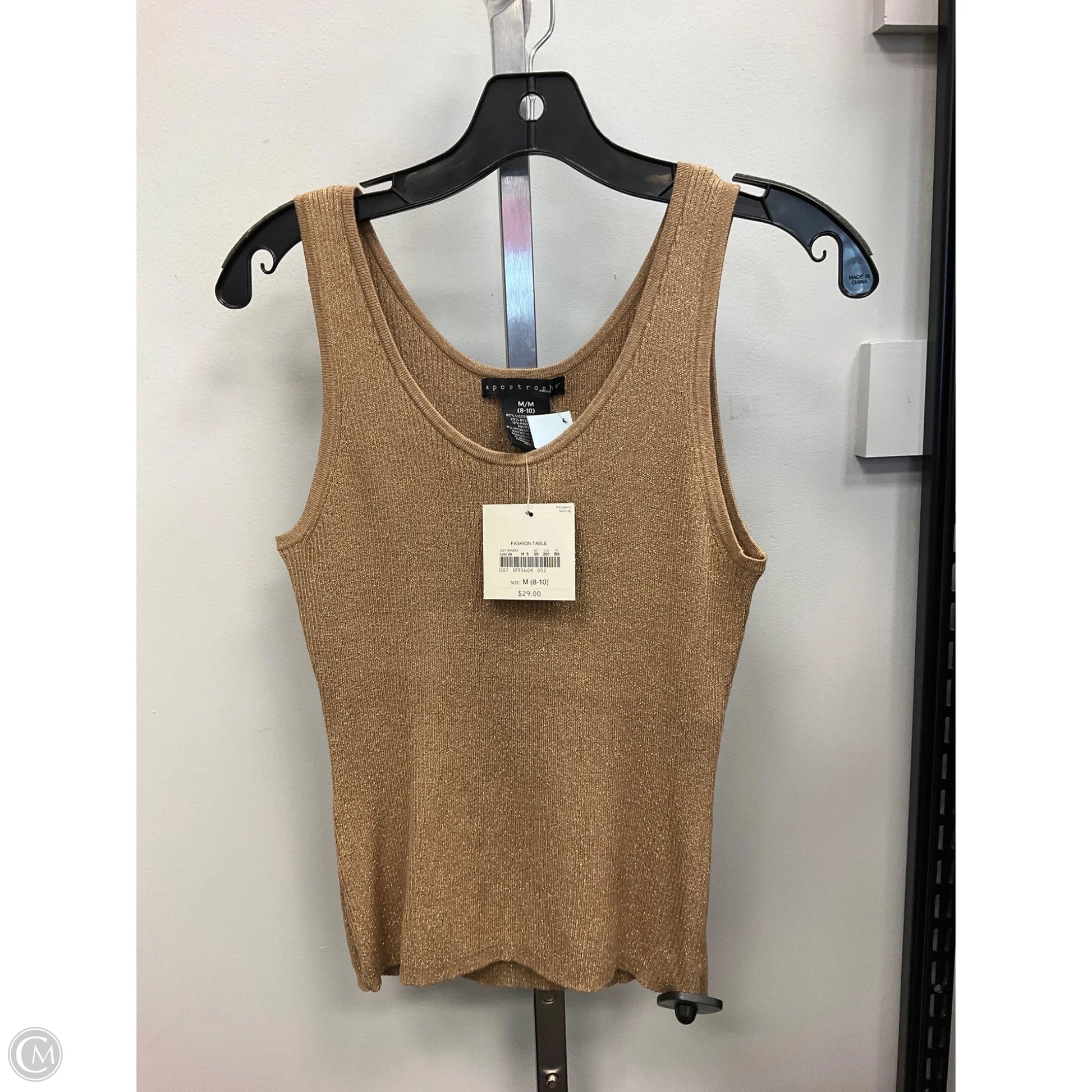 Top Sleeveless By Apostrophe In Gold, Size: M